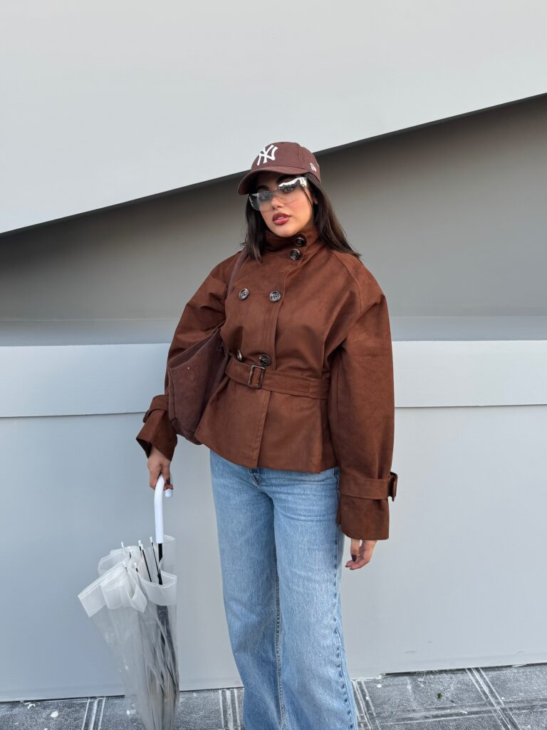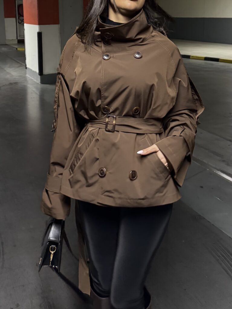 کلاه از یقه جدا میشود/ داخل جیب دارد/ کمربند دارد